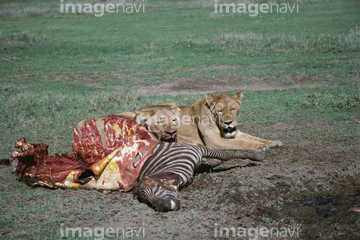 生き物 > 陸の動物 > ライオン・トラ,2匹 ンゴロンゴロ 食物連鎖】の画像素材 | 写真素材ならイメージナビ