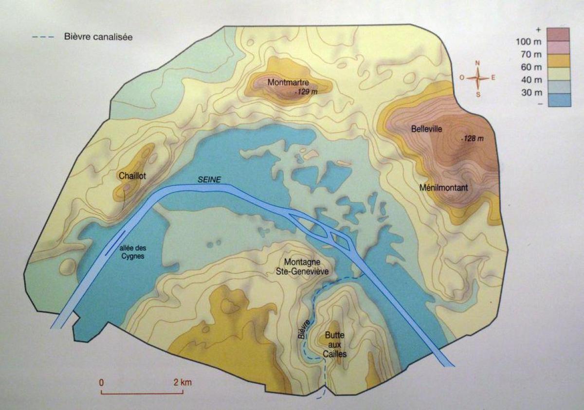 パリの標高地図-地図のパリの高いフランス)