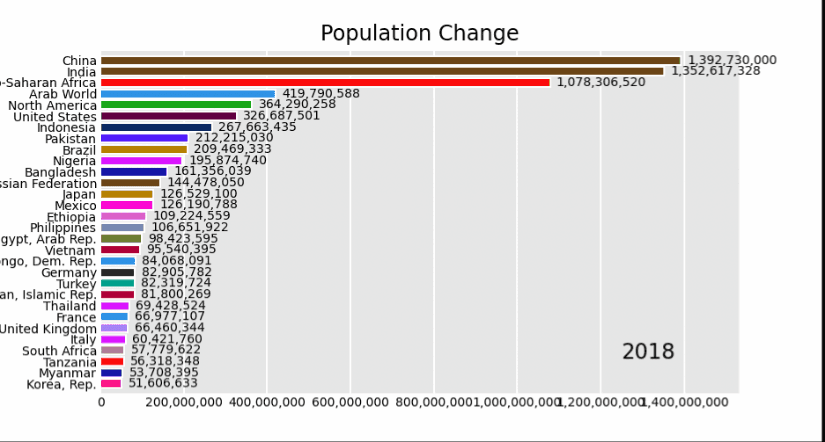 世界196ヵ国の人口比較データをもとにアニメーション棒グラフを作成するレシピ