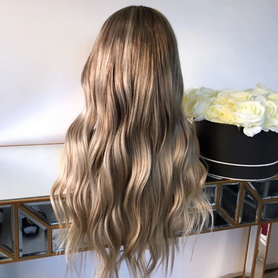 100% 人毛ウィッグ,ウェーブのかかったブロンドの波,ヘアピース,シェードなし,チョコレート,ブラジリアン,フルエンド - AliExpress