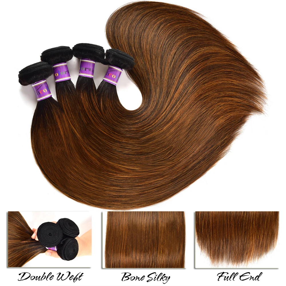 ブロンズ製の人間の髪の毛のエクステンションバッチ,ストレートボーン,チョコレートブラウン ,ウェーブのかかったヘアエクステンション,8インチから30インチ,1/3/4ロット