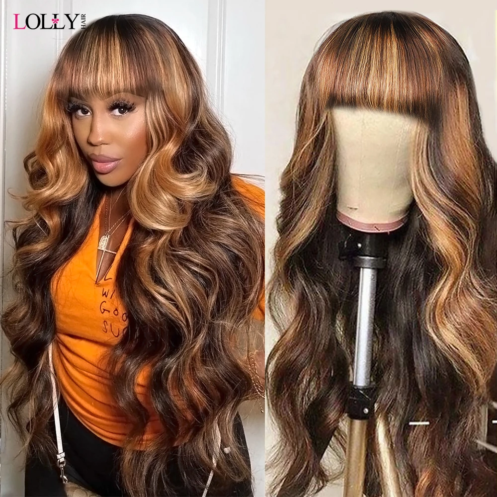 ハイライトかつら人毛実体波かつら4/27蜂蜜ブロンド茶色のかつら前髪人毛かつら女性のためのブラジルのremy毛かつら - AliExpress