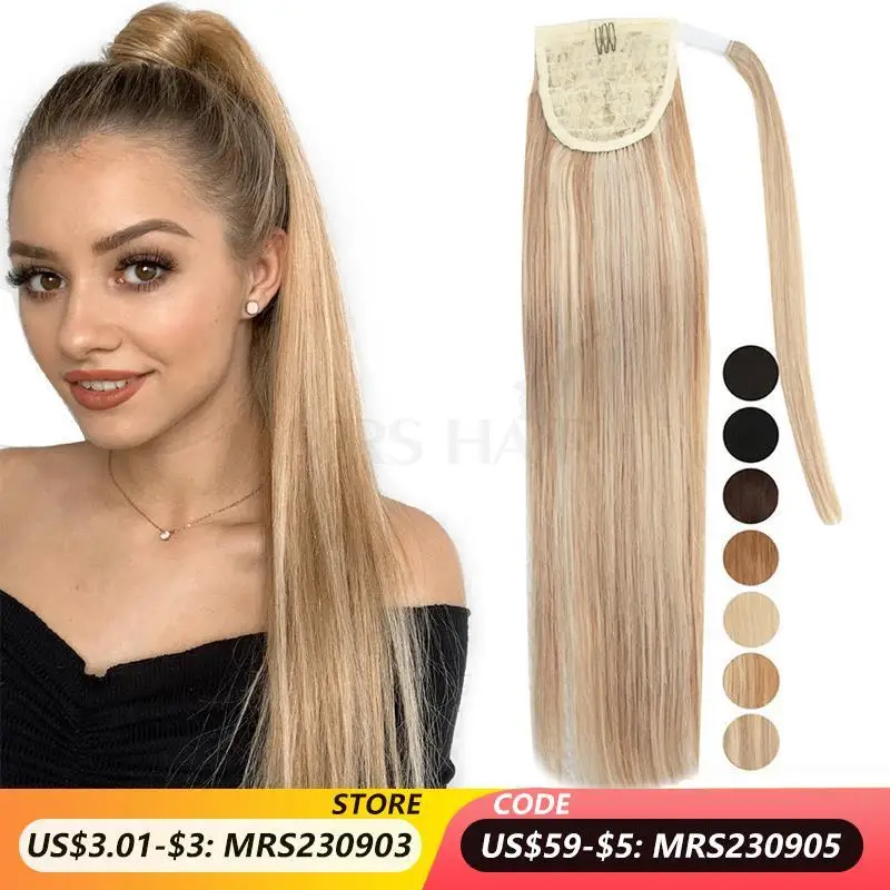 Mrs hair-ポニーテールエクステンション,自然な髪,長い,ブロンドブラウン,12〜24インチ,クリップ付きの本物のヘアエクステンション - AliExpress