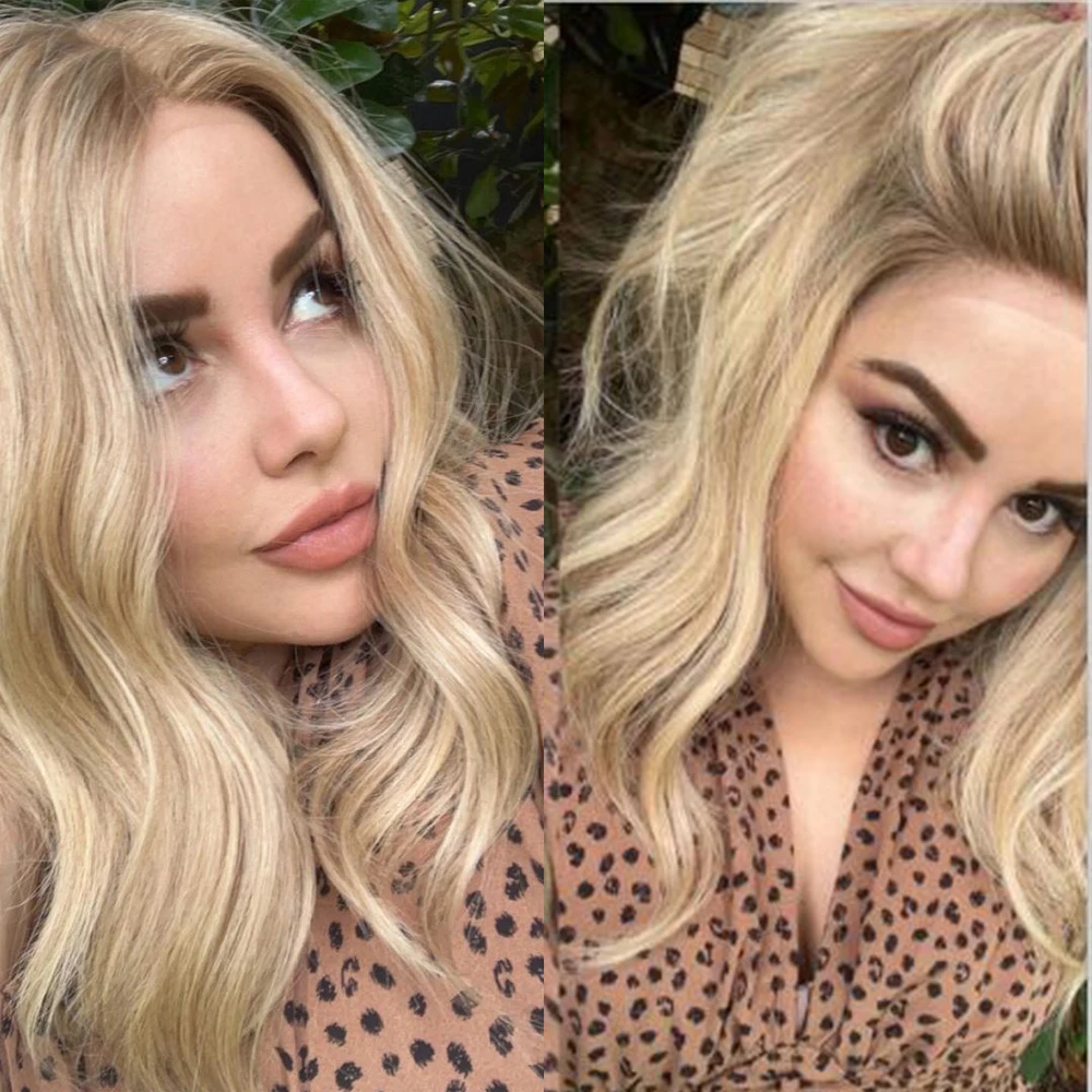 ナチュラヘアリンク付きの完全なペルーのかつら,レミーの髪,プラチナブロンドのハイライト,劣化した色,13x6 - AliExpress