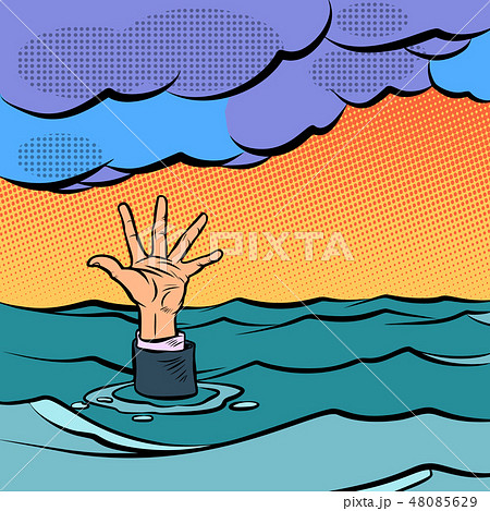 ストック イラスト。ポップアートと古い漫画のスタイルです。溺れている人の手。のイラスト素材・ベクター Image 55945627