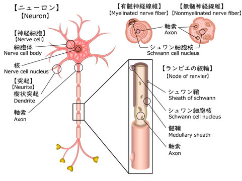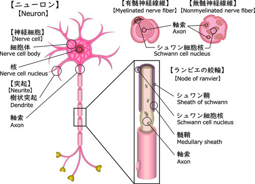 神経細胞(ニューロン)の構造図_文字有のイラスト素材 [216664996] - イメージマート