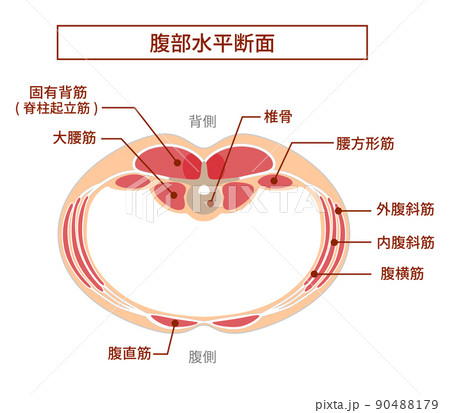 腹部断面図のイラスト 腹筋群の重なり位置関係のイラスト素材 [90488179] - PIXTA